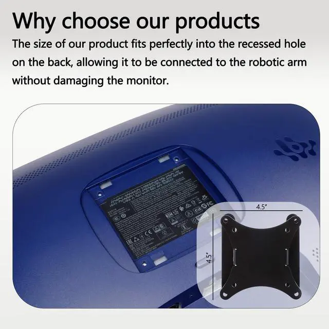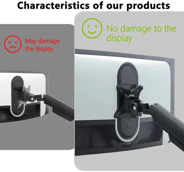Elevate mounting point: The recessed holes on the back of your monitor may be too small to fit a standard VESA plate, forcing the mount could damage the monitor, but our adapter elevates the mounting point to allow any VESA plate to be mounted, ensuring your monitor remains intact.
