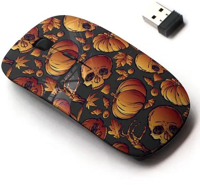 CJCBROES 2.4G Wireless Mouse with Cute Pattern Design for All Laptops and Desktops with Nano Receiver - Halloween Skull Leaves