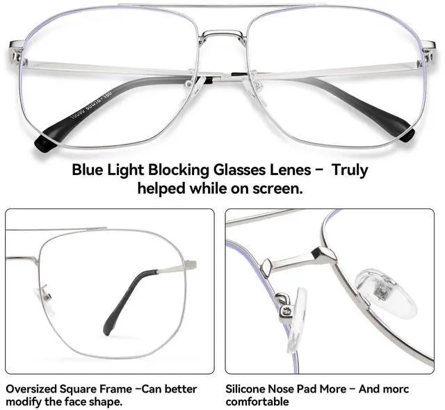 ^^ STYLISH DESIGN: Aviator bluelight glasses womens with a sleek frame and clear. These glasses make a fashion statement. Exquisite metal colored frame with HD plastic lenses offer you a comfortable vision, durable and suitable for longtime wearing.