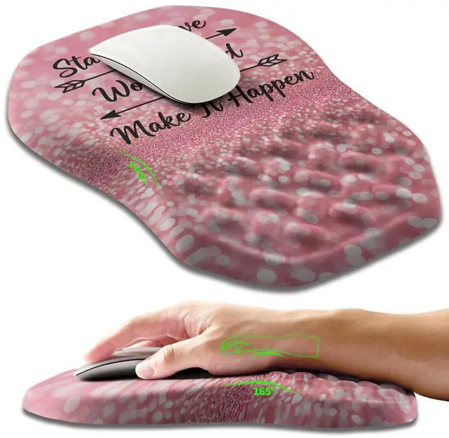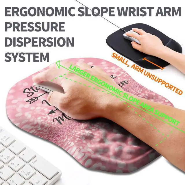 Ergonomic SlopeThe perfect combination of ergonomic slopes and cross massage beads can change wrist posture, alleviate wrist pain and fatigue, improve carpal tunnel syndrome (CTS), and keep your wrist in the most comfortable state. ^^ Right or Left Handed12x8x 1.2 inches (300x200x30mm) large space, suitable for left-handed or right-handed people, allowing everyone who owns it to work comfortably. ^^ High QualityIntegrated slope adopts high elastic slow rebound memory foam, which is not easy to deform after long-term use. The surface is made of silky lycra fabric, which is skin friendly, specialized, and non pilling.