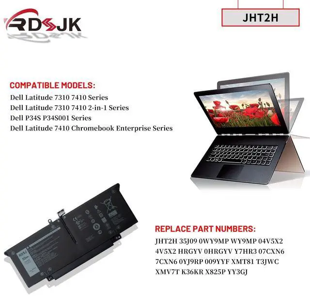 Part Numbers: JHT2H 35J09 0WY9MP WY9MP 04V5X2 4V5X2 HRGYV 0HRGYV Y7HR3 07CXN6 7CXN6 0YJ9RP 009YYF XMT81 T3JWC XMV7T K36KR X825P YY3GJNote: Please check if this battery is compatible with your computer before purchasing. If you are not sure for that, please contact us!