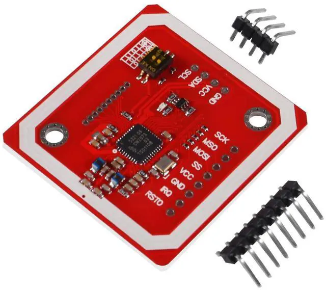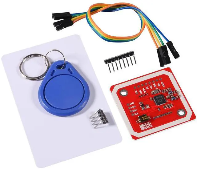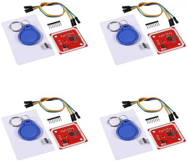 RFID Reader/Writer Supports: 1) 1K, 4K, Ultralight, and DesFire Cards 2) ISO/IEC 14443-4 Cards Such As CD97BX, CD Light, Desfire, P5CN072 (SMX) 3) Innovision Jewel Cards Such As IRT5001 Card 4) FeliCa Cards Such As RCS_860 and RCS_854 8. Built in PCB Antenna, with 4cm~6cm Communication Distance 9. On-Board Level Shifter, Standard 5V TTL for I2C and UART, 3.3V TTL SPI 10. Work as RFID Reader/Writer 11. Work as 1443-A Card or a Virtual Card 12. Exchange Data with Other NFC Devices Such As SmartphonePackage Contents: 4x PN532 NFC RFID Module 4x 2.54 mm Spacing 4pin Cable 4x White Card 4x One S50 Key Card 4x 12P Bended Male Pins