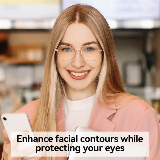 ^^ STYLISH DESIGN: Round bluelight glasses womens with a sleek frame and clear. These glasses make a fashion statement, they are perfect for any woman who wants to look chic and sophisticated while safeguarding her eyes from blue light exposure.