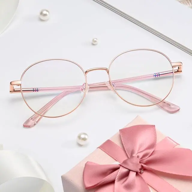 ^^ HIGH-QUALITY MATERIALS: Round blue light glasses for woman are made of reinforced metal frames, soft silicone nose pads, and slingshot hinges, The soft silicone nose pads can adapt to different nose shapes, slingshot hinges opening and closing degree of the temples exceeds the traditional 90 degrees and can reach 105 degrees, making the head wear looser, more comfortable and more flexible. all the details ensuring you a perfect performance.
