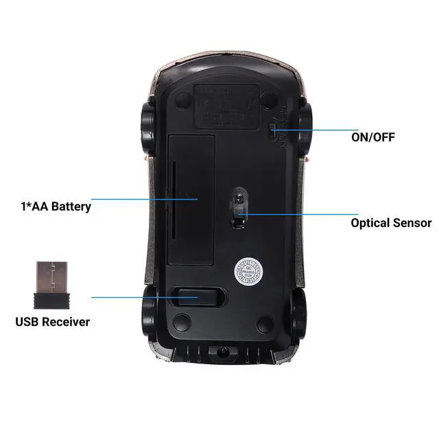 Wireless usb optical mouse fashion sport car design, cool gaming mouse for laptop computer, good choice for using or as gifts for kids, girls, women and men ^^ Powered by 1 AA battery (not included), Size: 4.5 (L) * 1.7 (H) *2 (W) inch, Net