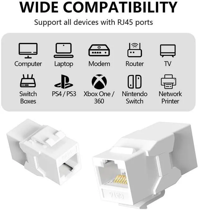 Theyre perfect for home networking, office connections, and audio/video transmission. Each package includes 25 RJ45 Cat6 Keystone Couplers and is backed by a 12-month warranty, providing peace of mind and dependable quality.