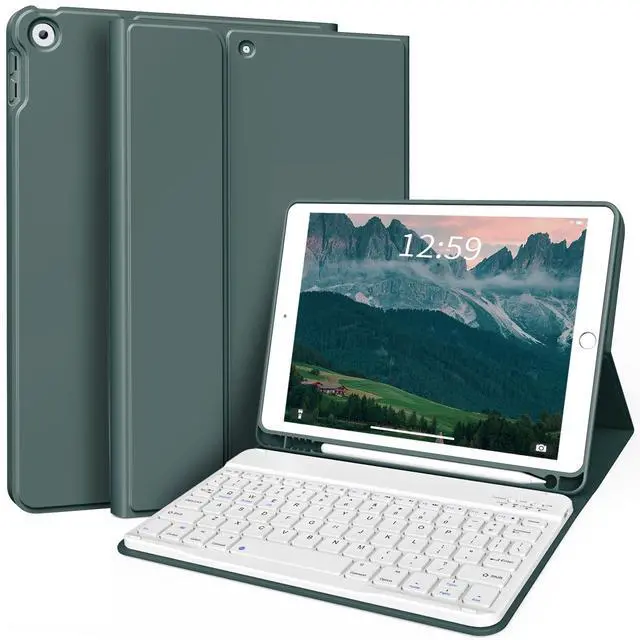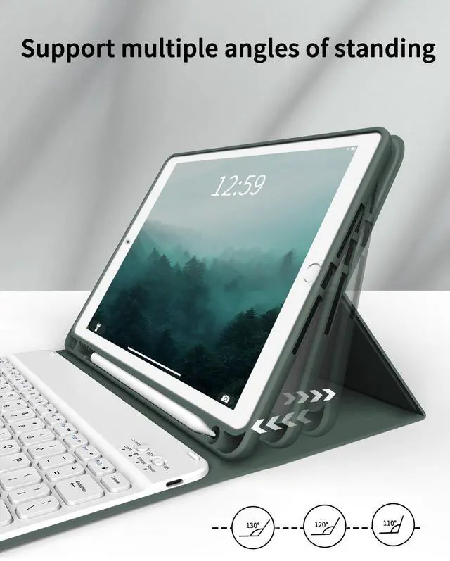 Model: A2602 / A2603 / A2604 / A2605 / A2270 / A2428 / A2429 / A2430 / A2197 / A2200 / A2198 ). NOT compatible with any other iPad models. Please check the back bottom of your iPad to find the model number before placing order. ^^ Slim Wireless Bluetooth KeyboardThe slim ( 6.2 mm) removable keyboard is attached to this Apple iPad 9th generation case with keyboard magnetically (supporting Windows, IOS & Android System), let your ipad instantly become a portable laptop, perfect for working, typing, editing or watching videos, greatly improved your iPad productivity. ^^ Long Battery Life & Multi Angle SupportBuilt-in industry-high rechargeable Li-polymer battery make the wireless keyboard of this smart keyboard for iPad 9th generation stand by for more than 3 days after 2-3 hours of full charge. The protective shell can be placed at different tilt angles to adjust the optimal viewing angle, very flexible and user-friendly. ^^ Buit-in Pencil Slot & Sturdy PU MaterialThe iPad case with keyboard has a convenient left side built-in pencil slot that easy to storage and remove your pencil (Apple Pencil is Not included). Premium PU leather cover is waterproof, scratch proof and fingerprint proof, providing full protection for your beloved tablet.