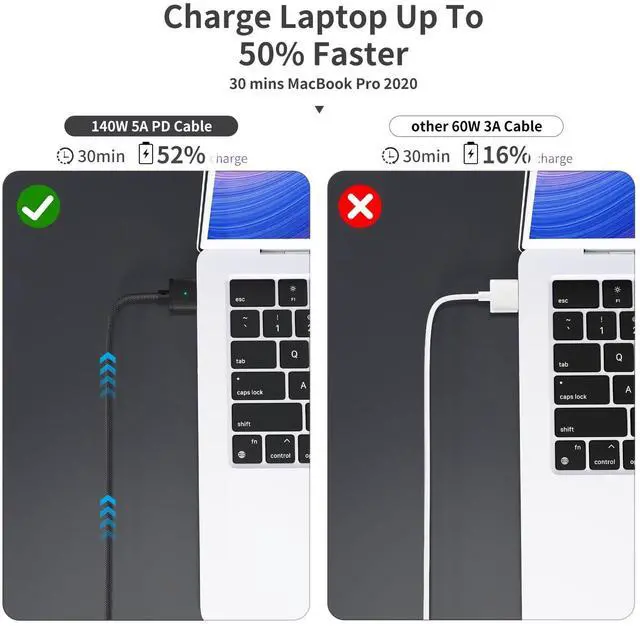 SEAMLESS CONNECTIVITY FOR EVERYDAY USE: Experience hassle-free charging with our 140W magnetic safe charging cable's seamless magnetic connectivity, designed to simplify your MacBook charging routine. With a convenient 6.6 -foot length and durable nylon braided construction, it offers flexibility and reliability for all your charging needs ^^