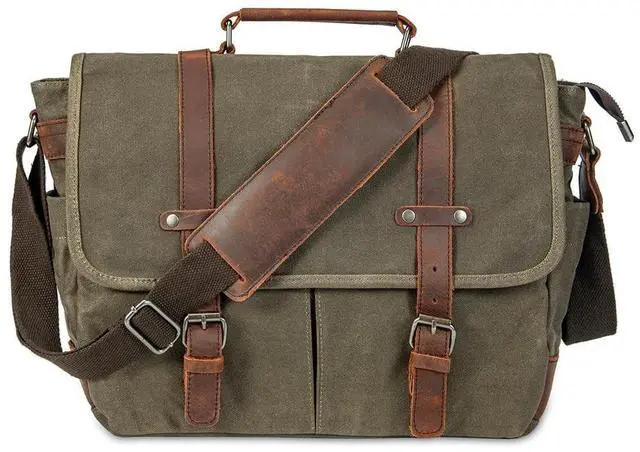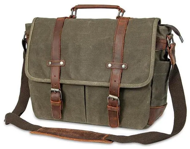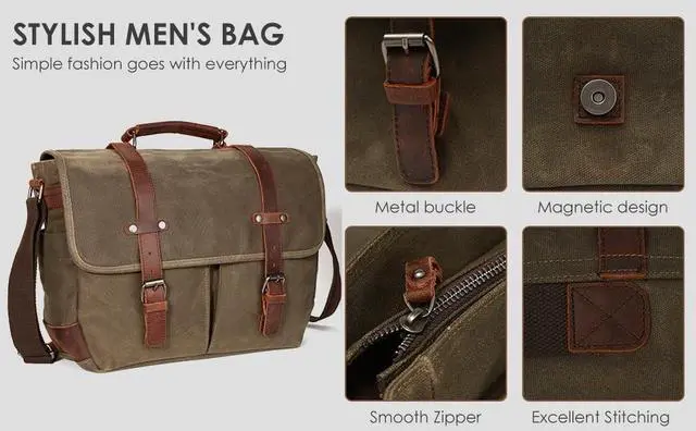 HIGH-GRADE MATERIALS: Waterproof Waxed Canvas Men's Vintage Genuine Leather Laptop Messenger Bags. martexin original wax canvas + superior cowhide leather+bronze hardware. Durable Leather and adjustable shoulder strap.