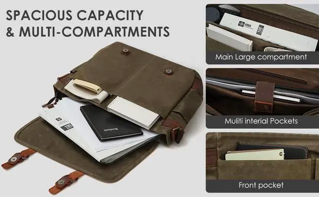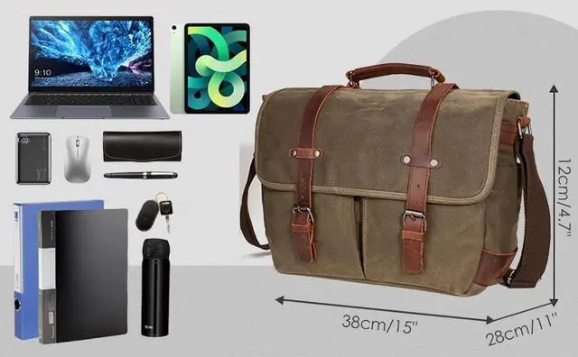Usage: commute, weekend, field, travel or everyday use. ^^ ORGANIZATION 1 x main compartment, 1 x padded laptop divider, 2 x inner slip pocket, 1 x inner zip pocket, 2 x pen holder, 2 x front slip pocket. ^^ CONVENIENT MAGNETIC SNAP & PADDED LAPTOP SLEEVE: Laptop messneger bag is double secured by magnetic snaps and zippers. Inner padded laptop sleeve fits for 15.6 inch laptop and cohesive seal ensure it to be steady. ^^ This Laptop messenger bag is highly recommended for the business man who needs to carry his laptop every day, perfect for the office, work or any outdoor activity. Give it as a gift to your best friends, family and yourself for Christmas/Father's Day/Valentine's Day/New Year