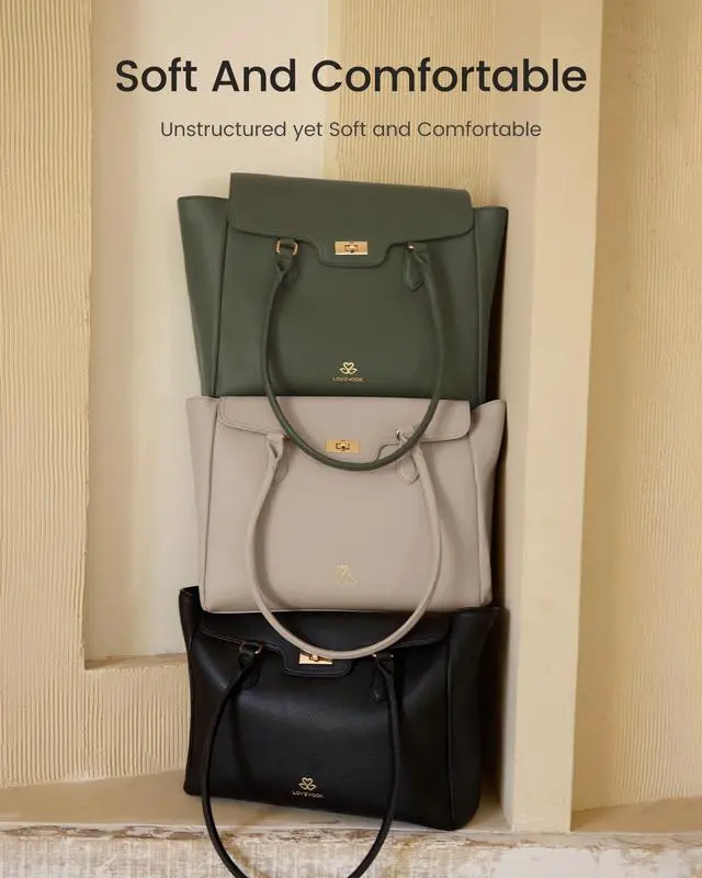Wide-Opening FlapFeaturing a practical wide-open flap and a sturdy rotating turn-lock closure, this tote bag for women offers easy access to your essentials like phones, lipstick, files, sunglasses ^^ Soft PU LeatherDesigned with pebble soft faux leather, this unstructured laptop tote blends exceptional comfort with a chic look, making this a great work bag or everyday tote ^^ 15.6 Inch Laptop CompartmentThis laptop bag has 1 padded 15.6" laptop compartment, 1 iPad tablet pouch, 2 pen slots, 2 slip pockets, 2 side pockets, 1 inner and 1 rear zipper pocket for your items ^^ Comfy HandlesLong, reinforced top handles make this large tote bag for women effortless to carry by hand or comfortably over your shouldereven with heavy loads ^^ Stanley Large Bottle Inner PocketThe interior pocket can keep a 40oz Stanley water bottle or tumbler upright and easy to grab, which is a must-have for busy teachers, travelers, and commuters ^^ Timeless & Versatile ColorsThis laptop tote bag for women comes in a variety of classic, stylish colors, making it an ideal complement for both professional and casual outfits ^^ Perfect Christmas GiftThis tote bag is ideal as an everyday tote, work purse, or women's briefcase, making it a thoughtful gift for teachers, nurses, businesswomen, and moms.