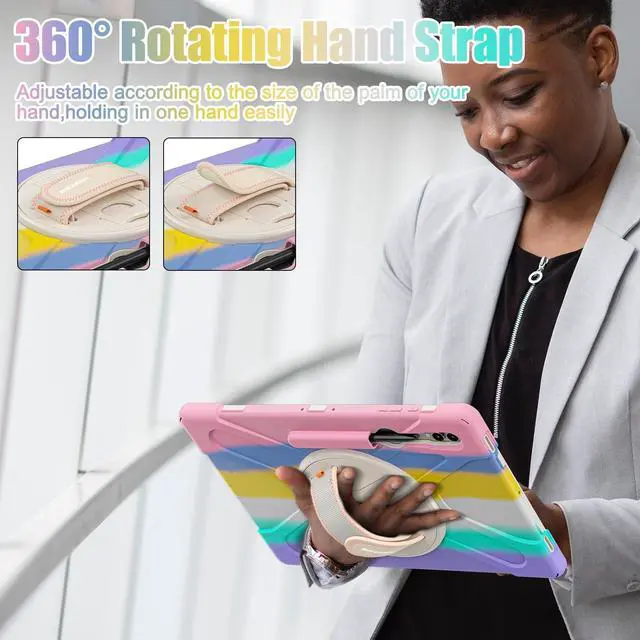 Rotating Hand Strap & Stand: The Protective Samsung Galaxy Tab S10 Ultra/S9 Ultra/S8 Ultra 14.6 inch Case Built-in 360 Rotatable Hand Strap & Kickstand on the back, flexible in Vertical & Horizontal any other angles ideal for watching video, reading or teaching, maximinzely free your hand. Adjustable Hand Strap perfectly suitable uses for all size of hands, adults, students, child ^^