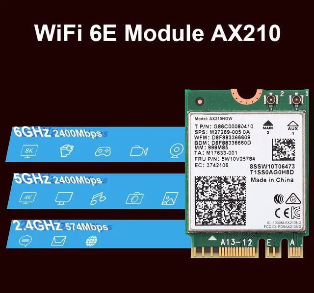 Hot blood WiFi 6E network card brings ultra-responsive real-time experience of VR, Gaming, and 8K HD video at the same time ^^ TWT Technology Extends Battery LifeTarget Wake Time (TWT) technology reduces power consumption for Laptops by negotiating when and how often they will wake up to send or receive data, increasing sleep time and substantially prolonging battery life ^^ Compatibility And DriverAX210 WiFi 6E Module has the latest WiFi technology and frequency band resources, which can be compatible with existing WiFi 6 routers and WiFi 6E routers to be released soon, such as ASUS, Netgear and tplink.
