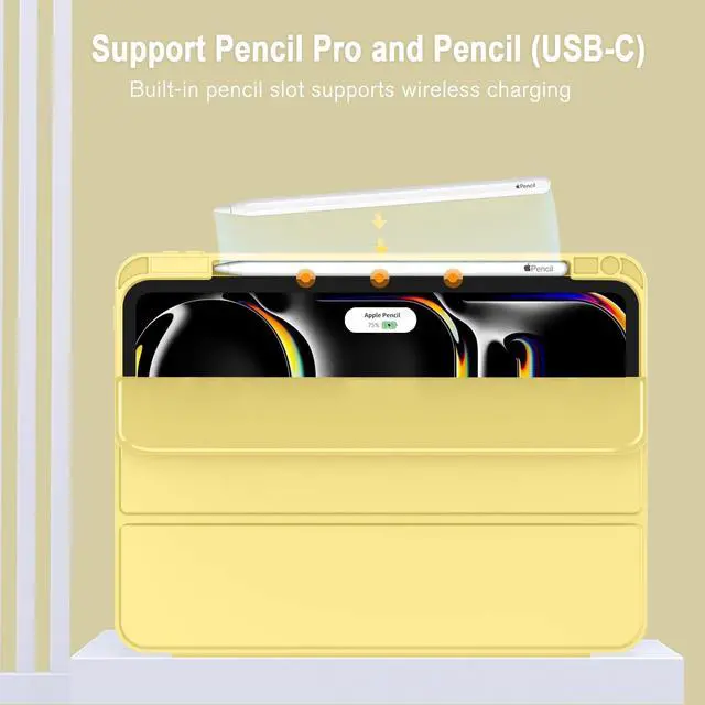 [Supports Pencil Pro and Pencil (USB-C)] This iPad Pro case fully supports Pencil Pro with a recessed side groove for magnetic charging and a magnetic clasp to keep your Pencil secure.