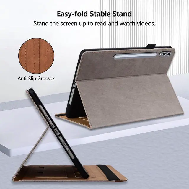 ^^ Practical functions: Classic and professional design. s9+ tablet cover has large pocket and two card slots are for bank cards, cash, paper, documents etc.