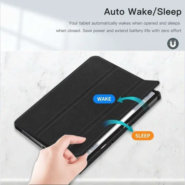 Ultra-Slim Trifold Smart Case for 13.2 -Inch TabletsInstant Auto Wake/SleepSeamlessly wakes your screen when opened and puts it to sleep when closedno buttons to press. Saves battery life effortlessly, just like your favorite tablet3-in-1 Versatile DesignCombines a lightweight protective case, adjustable stand, and secure magnetic closure. Fold it upright for typing, tilt it for videos, or lay flat for readingall hands-free. Fingerprint-Proof & Scratch-ResistantPremium synthetic leather repels smudges and wipes clean easily. Reinforced edges shield against drops, while the textured surface resists daily scuffs and scratches. Featherlight DurabilityThinner than most cases yet built to last.