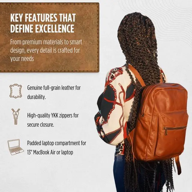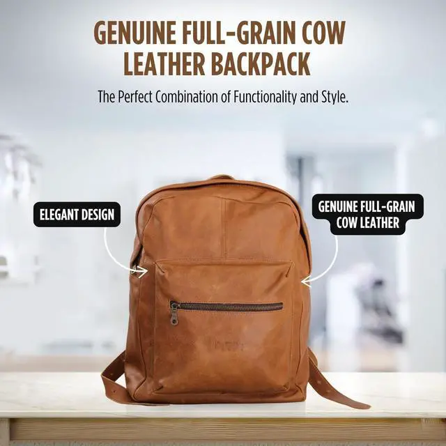Dedicated Laptop Compartment: Designed to fit a 13" MacBook Air or laptop, this leather laptop backpack features a high-density foam compartment for optimal protection, ensuring your valuable electronics stay safe during your travels ^^ Leather Backpack for Men and Women with Ample