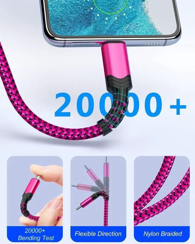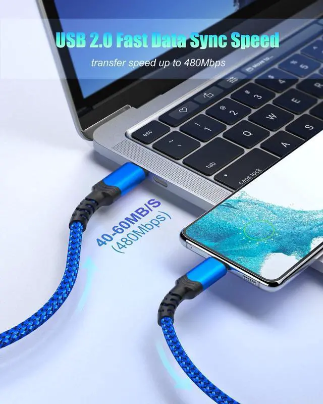 ^^ 60W Fast ChargingThe power of this USB-C to USB-C cable is strong enough to support 3 Amps current 60 watts max, efficiently charge your phone in full speed. Its also carrying data transfer function in 480M/bps. ^^ Built to LastWe use nylon braided cover to make it durable, wont easy to get dirt in daily life for long time use. Much more friendly for family with cats/dogs. Prolonged SR protector help to release the bending stress, extending its lifespan. ^^ Broad CompatibilityCompatible with iPhone 17 Pro Max, 17Pro, 17, iPhone Air, iPhone 16 Pro Max, iPhone 16 Pro, iPhone 16, iPhone 16 Plus, iPhone 15 Pro Max, iPhone 15 Pro, iPhone 15, iPhone 15 Plus, Galaxy S25 S24 S23 Ultra, S23+, S23, 22 Ultra, S22+, S22, S21 FE, S20, A54, A53, A16, A15, A14, A23, Note20, Note10, Pixel 7, 6, 5, 4, 4XL, and