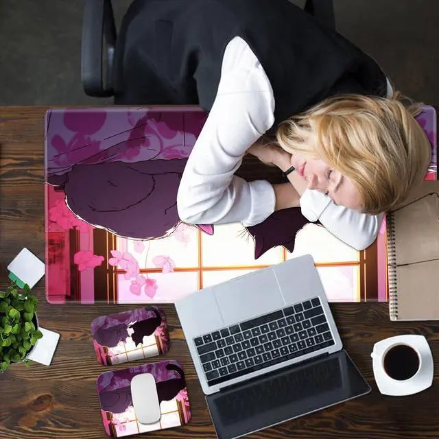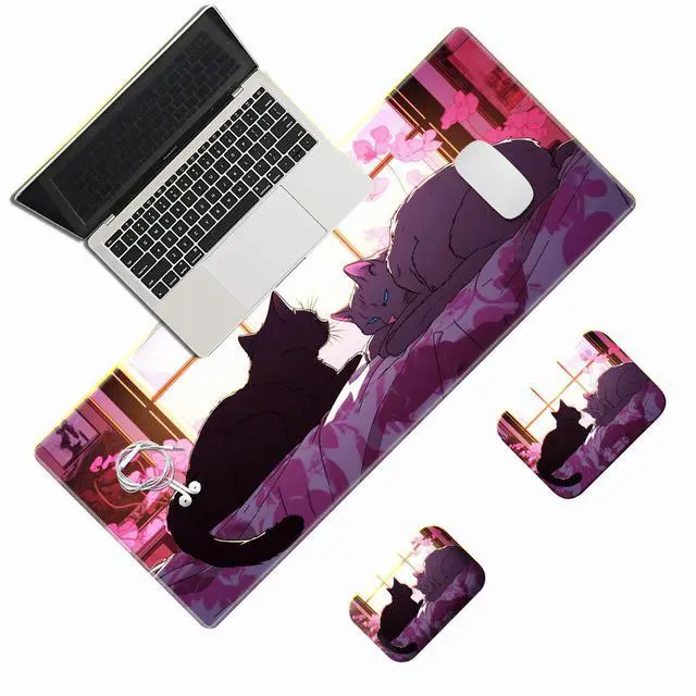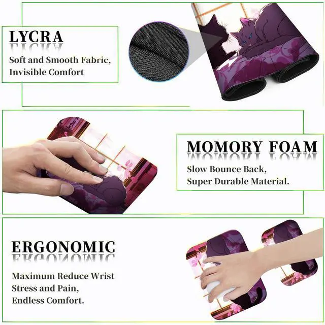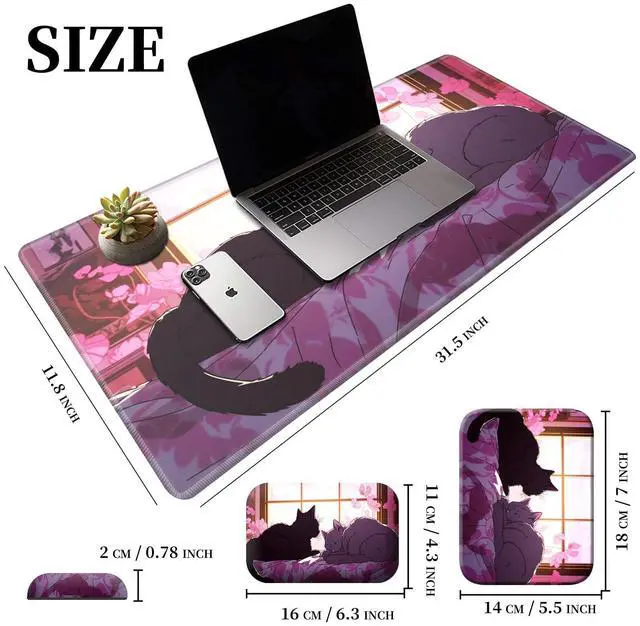 3-IN-1 CATS MOUSE PAD DESK WRIST REST PAD SET: Big mouse pad desk pad (12x24 inches) + wrist rest cushion pad for mouse ( 6.3 x 4.3 inches) + mouse pad small (5 x 7 inches) combo, compact design meets your work and gaming needs at any time, whether it's for home, office, or business trips. ^^ SMOOTH SURFACE WITH STITCHED EDGES, Top layer Lycra fabric is soft and smooth, Allows mouse accurate and more fast movement and Comfortable to write or type on, Easy to wipe clean or water wash and won't fade. High quality edge stitch mouse pad prevents the fraying or fall part, increasing durability and delicacy ^^