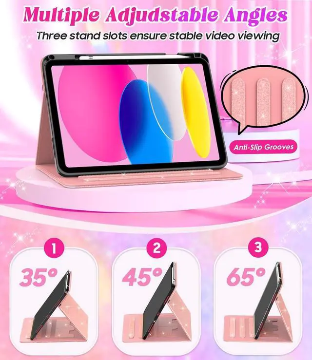 Adjustable Angle: The Zonefoker ipad 11th/10th gen case has three slots with upgraded anti-slip material; you can easily adjust it to different angle positions to reach your most comfortable viewing and typing angles ^^