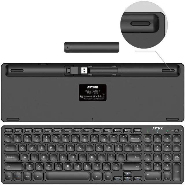^^ What You Get: Arteck HW305-2 Wireless Keyboard, MW167 Wireless Mouse, one nano USB receiver for both keyboard and mouse (stored in the back of the mouse), USB-C charging cable, welcome guide, our 24-months warranty and friendly customer service.