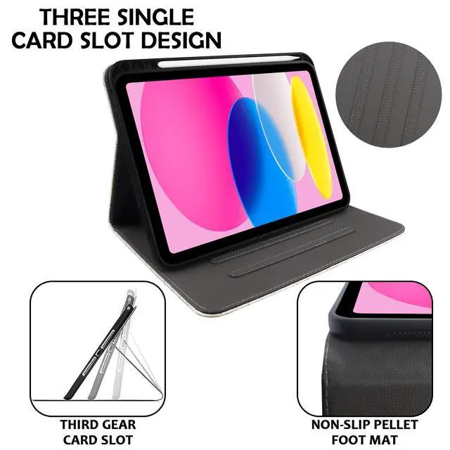 Number: A2696 A2757 A2777). Not compatible with any other devices. Check the bottom of the iPad to find the model number before purchasing. ^^ Premium DesignThe premium and lightweight design adds excellent protection to your device, The exquisite and smooth retro leather design makes your iPad more beautiful and stylish. Three Angle adjustment, anti-slip front stand shell to meet your work and play needs. ^^ Durable MaterialThe front and back are made of advanced TPU, which can protect your iPad in a full range of ways to avoid the damage caused by careless dropping. ^^ Easy to CleanDaily use only clean cloth to remove surface dirt, not easy to dirty, keep the original appearance! The iPad case has been carefully machined to be extremely durable, accelerate heat dissipation and be reusable. ^^ Sleep and WakeCameras, speakers, ports and buttons, in precise cutouts allow full access to all ports and functions without removing the case. Built-in provides automatic sleep/wake function to save energy when the lid is closed.