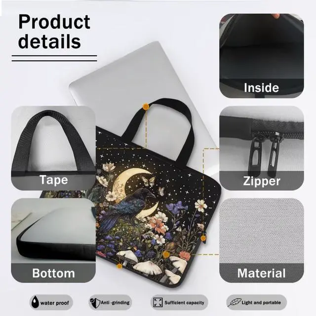 Unique Design: -Large CapacityThe laptop carrying case with a capacious compartment only, but it is large enough to store your notebook and power adaper or other essentials like pens, notepad and more. -Comfortable Top HandleErgonomic Handle, wide and comfortable, even if you hold a long, hand will not be tired. -ProtectionOur laptop sleeve made of water-resistant polyester, which obstructs water and vapor effectively. Don't worry about rain destroying your computer. Upgrade your laptop carrying experience with our thin and lightweight laptop bag. Dont hesitate and buy now!