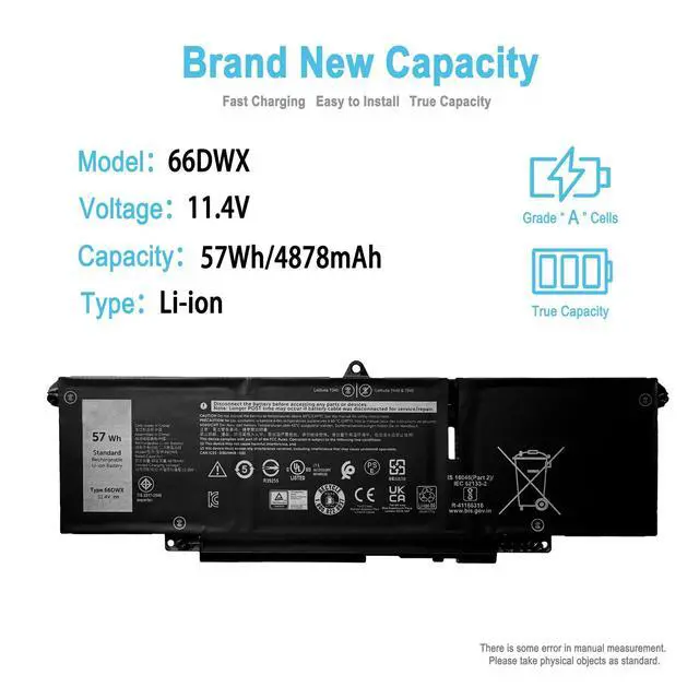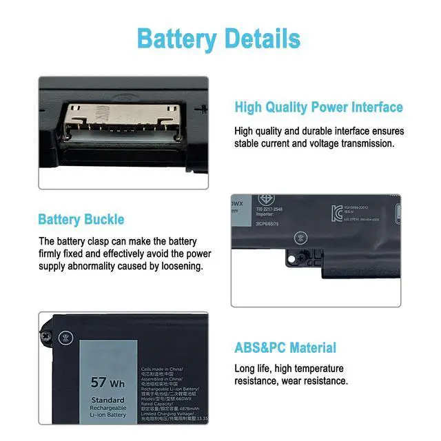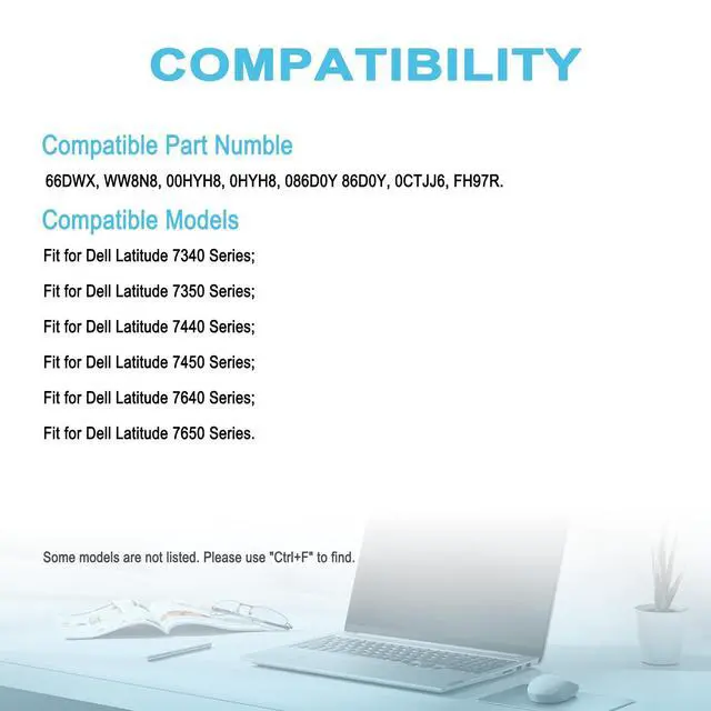 Condition: 100% brand new from manufacturer. ^^ Replacement Battery Part Numbers66DWX, WW8N8, 00HYH8, 0HYH8, 086D0Y 86D0Y, 0CTJJ6, FH97R. ^^ Compatible ModelFit for Dell Latitude 7340, 7350, 7440, 7450, 7640, 7650 Series. ^^ Security/QualityAll batteries are UL, CE, FCC, RoHS safety certification, built-in over charge, over discharge, over temperature, short circuit protection. The battery offers up to 1000 charge cycles and uses grade A battery cells to improve charging speed and battery performance, ensuring performance and durability. ^^ After-Sales SupportWe support 30 days refund, 12 months warranty (refund or replace battery), 24 x 7 mail support. return window will close one month after you receive the product and you can contact us by placing your order or by clicking " Ask a question" on the seller's page.
