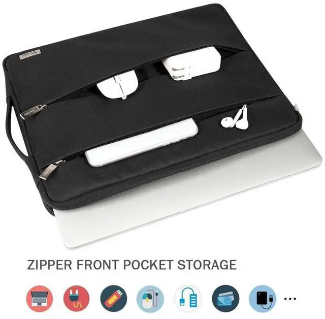 ^^ Super Protection: The rugged laptop sleeve cover has soft, thick and velvet lining, which buffer shake and impact, protect your notebook avoiding accidental hit and scratches. with a fully lined interior and interior border helps shield your device from damage, which provides excellent overall protection. The front 2 zip pockets, which are large enough to hold chargers, mobile phones, headphones, mice, USB drives, external hard drives, dongle and so on.