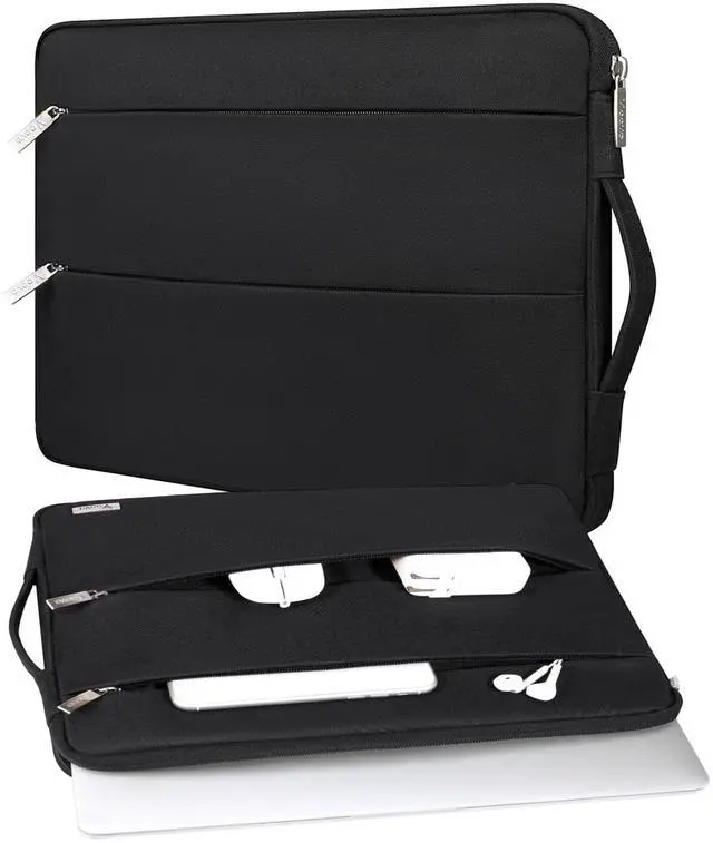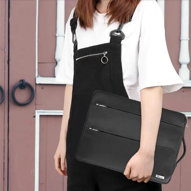 ^^ Easy to Carry: The deluxe laptop case has a retractable handle. The top handle instead of a side handle, so it makes laptop bag easier to get out of your backpack or suitcase. If you tend to drop things so the laptop case having a handle is very convenient, not have to hold it and worry about it slipping out of your hand.