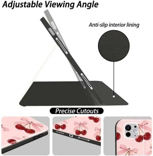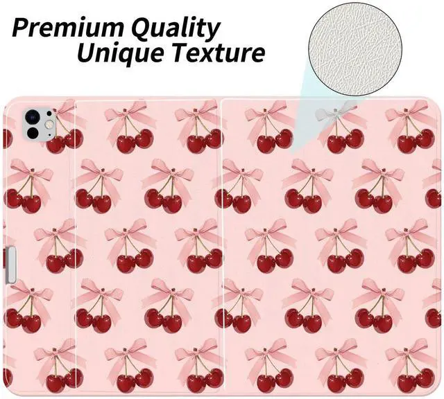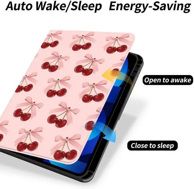 This cute cherry case with pencil holder designed for iPad 10th Generation/2022, 10.9 Inch.