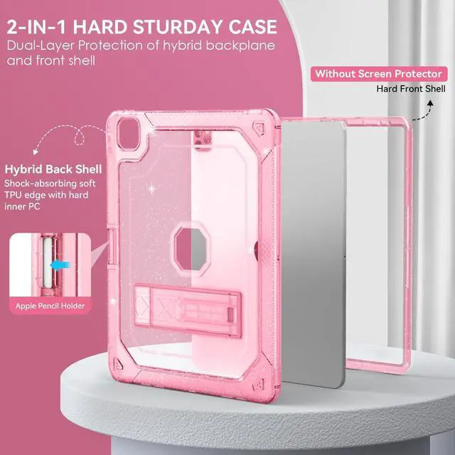 Model Number: A2764/A2437/A2766/A2436/A2378/A2461/A2379/A2462/A2229/A2069/A2232/A2233/A1876/A2014/A1895/A1983(2022/2021/2020/2018 release). This ipad case WITHOUT built-in screen protector. NOT fits for any other devices. ^^ Functional Kickstand - Cover built with convenient kickstand that slides out for typing, gaming or video watching at home or on the go. Built from durable plastic material exterior - Snug fit, hybrid shockproof and protection. ^^ Shockproof Rugged Design- 2 In 1 structure of hybrid material back shell and hard front casing effectively protects your iPad Pro 12.9 inch from scratches and accidental drops, bumps, and impacts. ^^ Portable Rechargeable Pencil Holder- Built-in Pencil Slot for the 2nd Gen Apple Pencil, which will fasten the pencil tightly and charge immediately. It doesn't take too much space and you can use your Apple Pencil anywhere. ^^ 24 Hours Customer Services- We provide 24h customer service for this iPad Pro 12.9 inch Case. If you have any questions of installation and usage, please feel free to tell us by email, we are always here to help.
