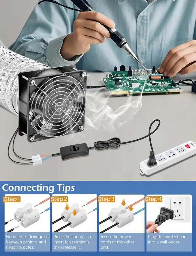APPLICATIONS: Our door corner fans are the perfect solution for ventilating tight spaces like crawl spaces, basements, chicken coop, and attics. The fan deliver a powerful and efficient airflow, ideal as a replacement to circulate fresh air and effectively move heat in various settings ^^ Wires are not