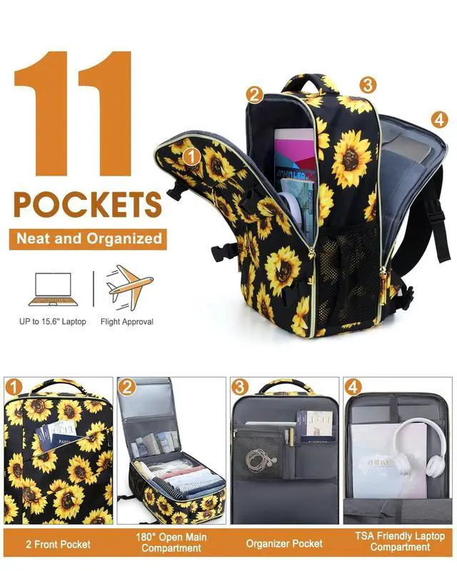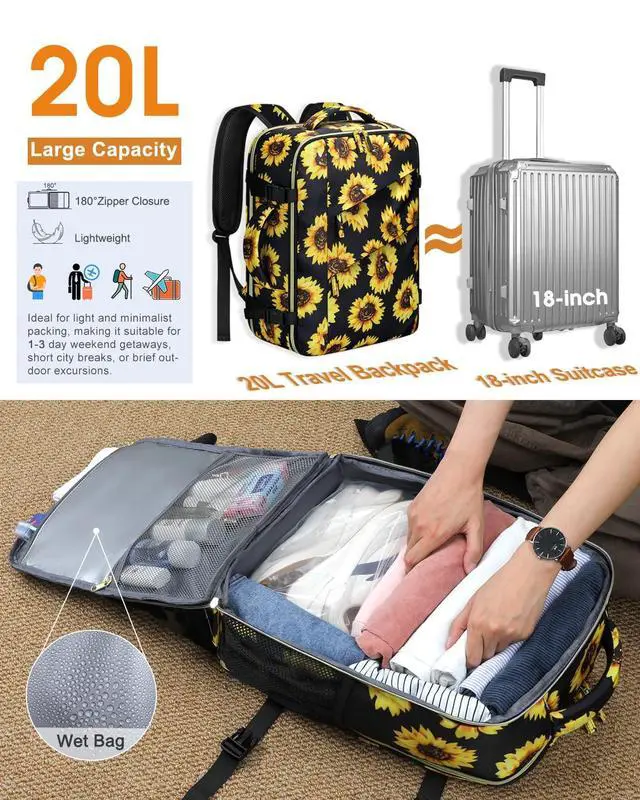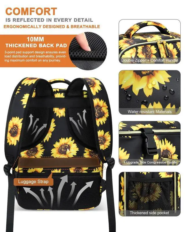 Backpack: Tailored with adjustable shoulder straps and a 10MM thickened three-point back support panel. This thoughtful construction improves airflow and evenly distributes weight across your back, ensuring maximum comfort even in extended wear. The backpack mode functions as a stylish daypack, the luggage strap allows you to secure it to your suitcase, adding extra convenience., and side handle helps you seamlessly transition from a backpack to a carry-on bag. ^^ 4 Unpate Side Compression Buckle & Double Zipper: 4 upgraded side compression buckles let you easily adjust the bag to keep everything in place, no more rummaging through a jumbled mess, and eliminate your concerns about unintended openings. The matching double zippers add a touch of style while making it easy to search your bag. Thickened side mesh pocket perfect for your umbrella and water bottle. Every little thoughtful feature is designed to make your life easier and your travels smoother. ^^ Water-resistant Materials & Wonderful Customer service: Our backpacks are made of new-generation water-resistant polyester to protect your belongings from light rain and splashes. It functions perfectly as a college backpack, a travel companion, or a reliable commuter bag for work, seamlessly adapting to your daily needs. Excellence Customer Service-Whatever you need, whenever you need it, we are here for you!