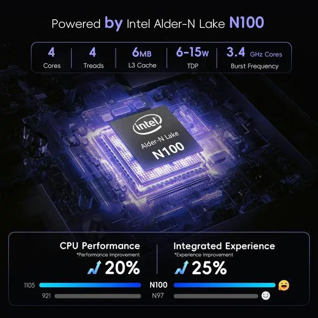 WVX 2025 Mini PC N100 (Up to 3.4 Ghz 4T 4C) Small Computers Support 4K Dual Display Micro Desktop Computers LPDDR5 3X USB 3.2 WiFi Bluetooth (N100 12G+512G)