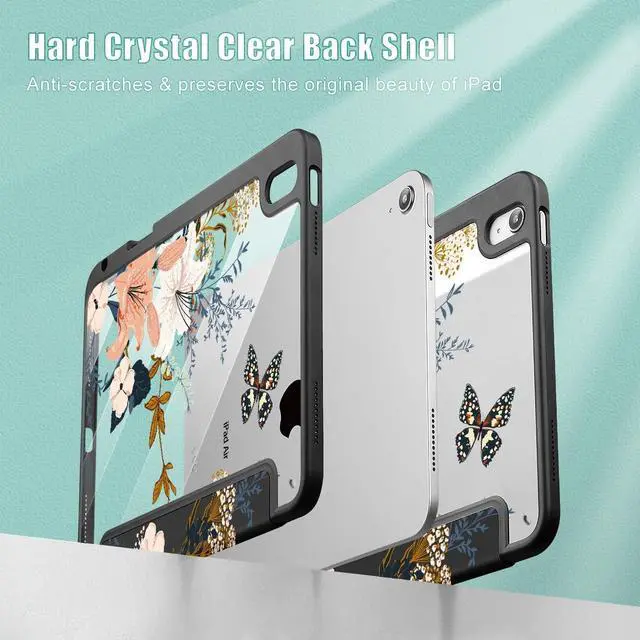 ICEKEE for iPad Air 11 Inch Case 7th/6th Gen (M3/M2) 2025/2024, for iPad Air 5th/4th Gen Case 10.9 Inch 2022/2020, Slim Stand Protective Cover with Hard Clear Back Shell Cover, Garden Flowers