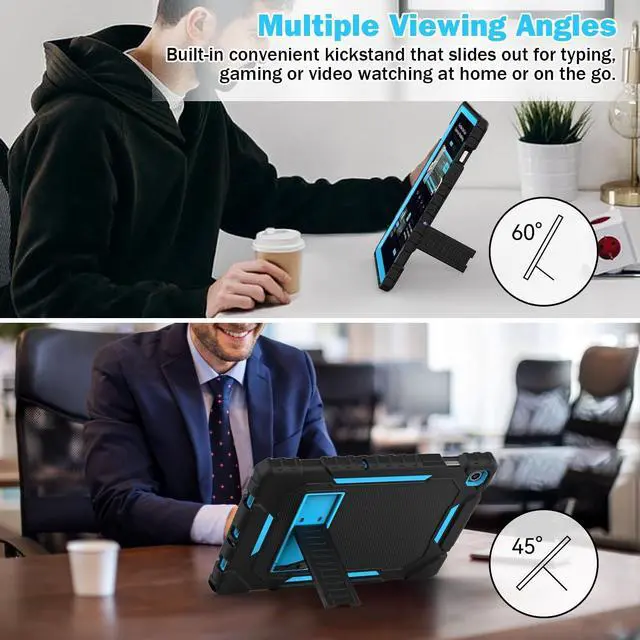 • Functional Kickstand - Cover built with convenient kickstand that slides out for typing, gaming or video watching at home or on the go. Built from durable plastic material exterior - Snug fit, hybrid shockproof and protection.