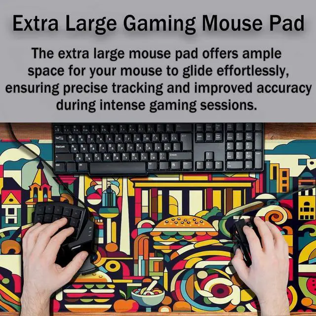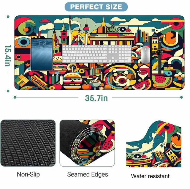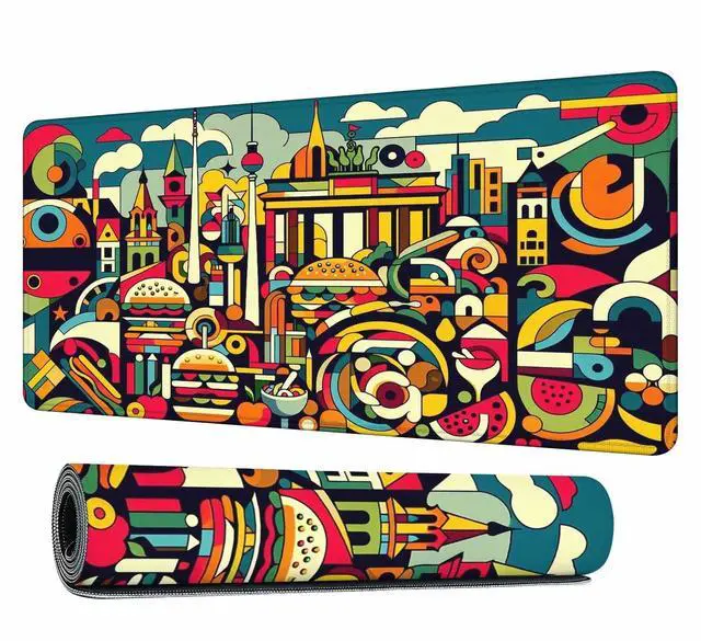 Y YIHANGBEST Abstract Berlin Skyline Mouse Pad Desk Mat Colorful Art Food Lines Large Gaming Mousepad for Keyboard PC.Home,Office 35.4"X15.7"