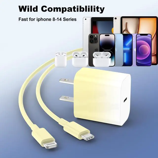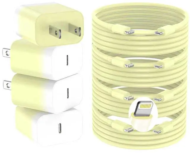 GREPHONE iPhone Charger Fast Charging,20W PD USB C Wall Charger 4 Pack with 6FT Fast Charging Cable - Fast Charger for iPhone 14/14 Pro Max/13/13 Pro/12/12 Pro/11/11 Pro/XS, iPad(Yellow)