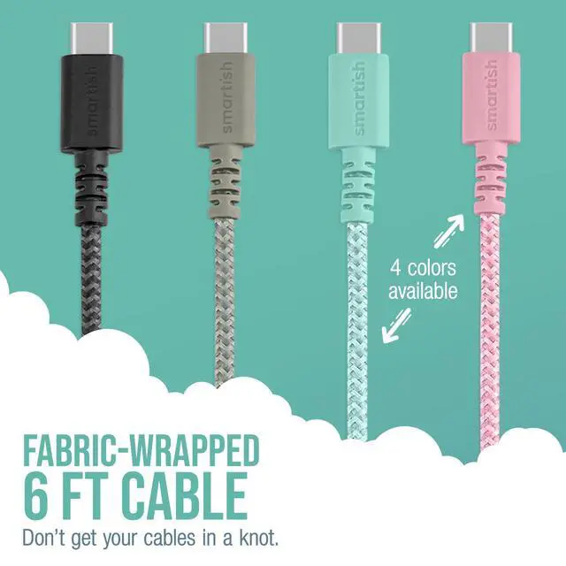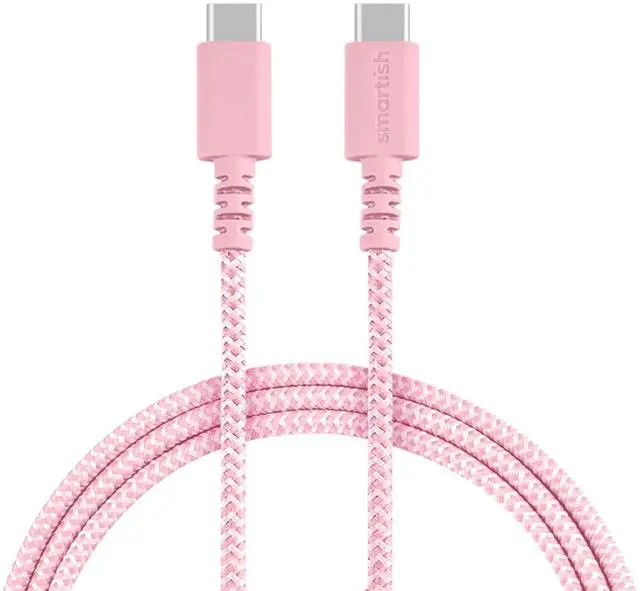 Smartish USB-C Charger for iPhone 16,15 - Crown Joule - 6 Foot Fast Fabric Wrapped 6ft Charging Cable 100W - [Nylon USB C to USB C Cord] Compatible w/Android, Pixel, Galaxy - MacBook Pro - Pink