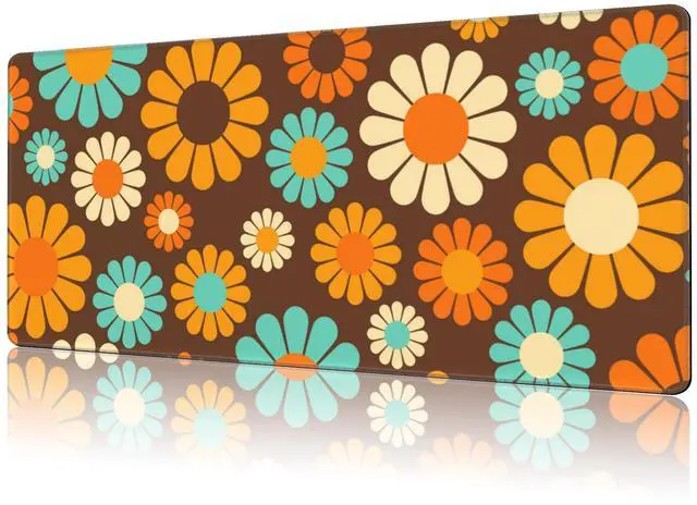 NIYLYNSYN Mouse Pad Large Retro Flower Non-Slip Game Desk Mat with Stitched Edge Laptop Keyboard Desk Pad for Work Home Gaming (35.4 x 15.7 Inches)