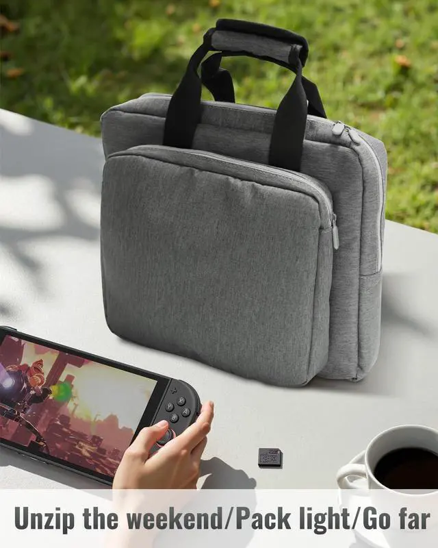 ^^ Enhanced Shock & Impact ProtectionEquipped with thick, shock-absorbing padding to safeguard your Switch 2 from accidental drops, bumps, and daily wear. Independent compartments minimize movement inside the case, preventing scratches and keeping your devices in pristine condition. ^^ Lightweight & Travel-FriendlyBuilt for gamers on the go, this sleek and lightweight case includes an ergonomic handle for comfortable carrying. Compact enough to fit in backpacks or luggage, its the perfect companion for travel, commuting, or everyday use. ^^ Durable & Water-Resistant 600D Oxford FabricCrafted from premium 600D Oxford fabric, this case is water-resistant, dustproof, and wear-resistantoffering long-lasting durability and reliable protection.