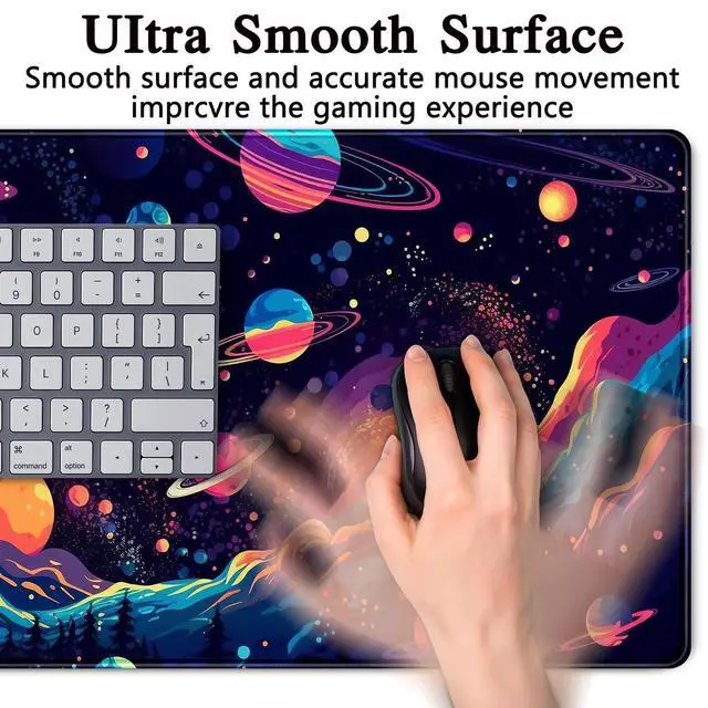 Non-Slip Rubber BaseFeatures: Non-toxic, no odor, harmless to health. Fine-textured surface improves tracking mouse movements, non-slip rubber undersurface firmly grips the desktop. At 3mm, its thick enough to protect and support your wrist and provide a soft, cushioned feeling and big enough to cover mouse movement.