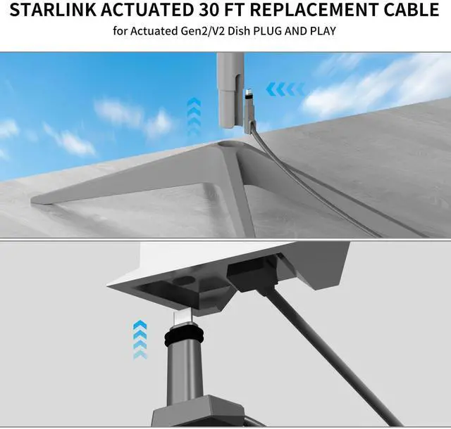 IDEAL LENGTH FOR VERSATILE SETUPS: The 33ft length of this extension cable replacement for Starlink rectangular satellite Gen2 offers optimal flexibility, allowing you to easily position your Starlink setup according to your specific space requirements. Whether you're installing indoors or outdoors, this length provides the perfect balance of reach and convenience for seamless connectivity. ^^