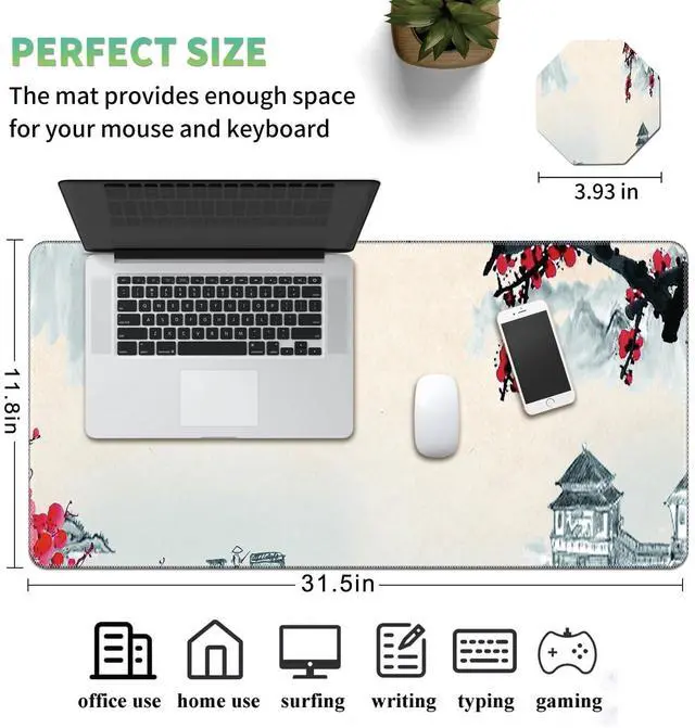 Tired of running into your keyboard? Come and add a perfect table mat for your keyboard! Our Mouse Pad is designed to make game play and office work much more comfortable. Large mouse mats allow technology lovers to place both keyboard and mouse in one spot. Why choose us? The size of 31.511. 8 inch is perfect for anyone who needs the maximum amount of mouse space. This full desk mousepad can protect your desktop from scratches and damage. Premium PU leather materials provide comfortable experience for your wrists and hands.