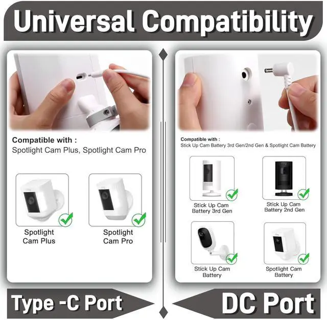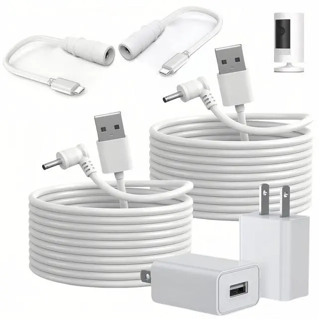 Compatibility2-Pack Power Adapter Charger Cable Compatible with Ring Stick Up Cam Battery/Plug-in 3rd Gen/2nd Gen & Ring Pan Tilt Stick Up Camera, Indoor/Outdoor Weatherproof Power Cord. ^^ Fast Sync & ChargeSupports quick charging up to 10W.