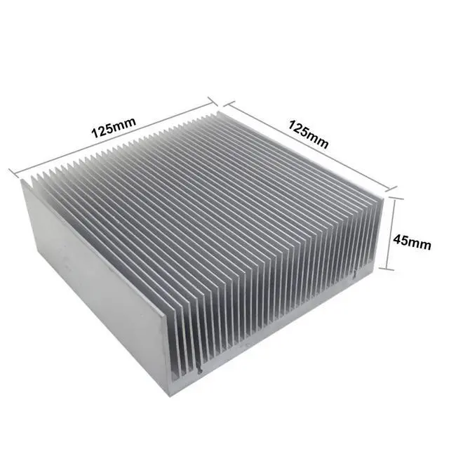What is this? It is a passive heat exchanger that transfers the heat generated by an electronic or a mechanical device to air, where it is dissipated away from the device, thereby allowing regulation of the device's temperature. The Aluminum Heatsink can reduce the overheating of electronic components. Widely used for Electronic, CHIP, LED, LCD, Power Transistor, Power Amplifier, Power Transistor, Voltage Regulator, Computer's heat dissipation, etc. Is there any advantages of the product? The 125mm Wide Large Heat Sink is made of a solid piece of aluminum, which helps improve thermal efficiency.
