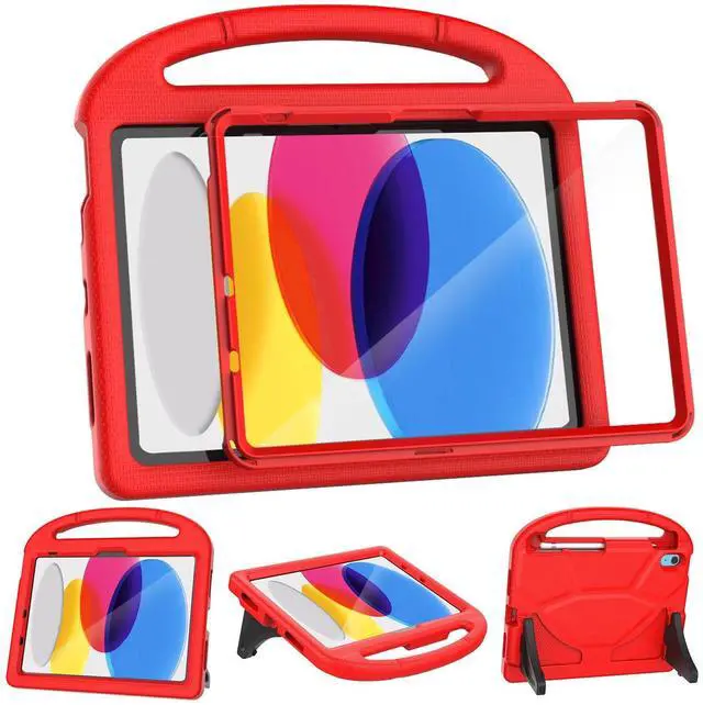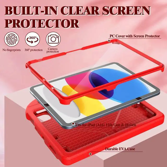 VICVOL Kids Case for iPad 11th Generation (A16 11" 2025) & iPad 10th Gen (10.9 inch 2022) Shockproof Full-Body Protective Stand Cover with Screen Protector, Pencil Holder & Handle, Red
