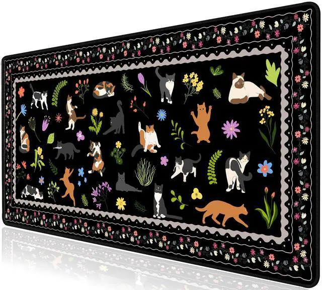 Pad Size: XXL mouse pad measures 35.4" x 15.7", this cute cat desktop mat provides ample space for your mouse, gaming keyboard, and other desktop essentials. Its large size of desk cover mat keeps your workspace neat and organized, perfect for both gaming and office use ^^