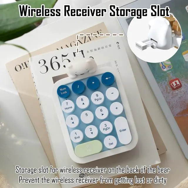 Cute Wireless Numeric Keypad with Silicone Bear, Colorful Round Keycaps, 2.4G USB Wireless Connection, Portable Financial Accounting Numpad Number Keyboard, Suitable for PC, Laptop